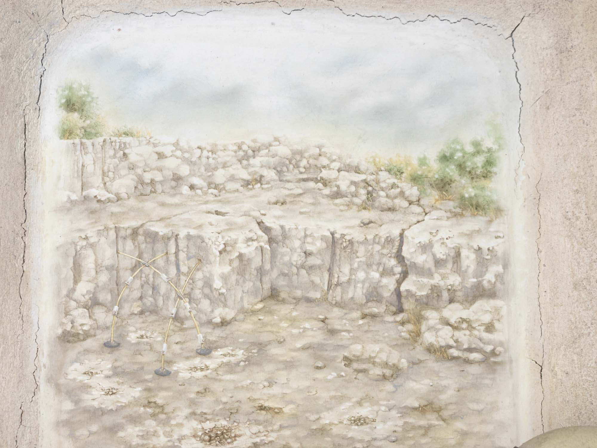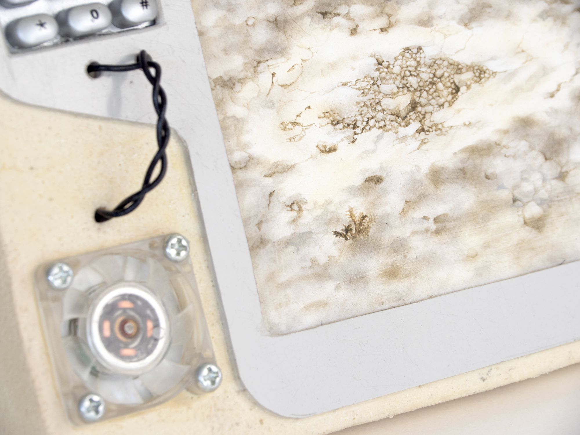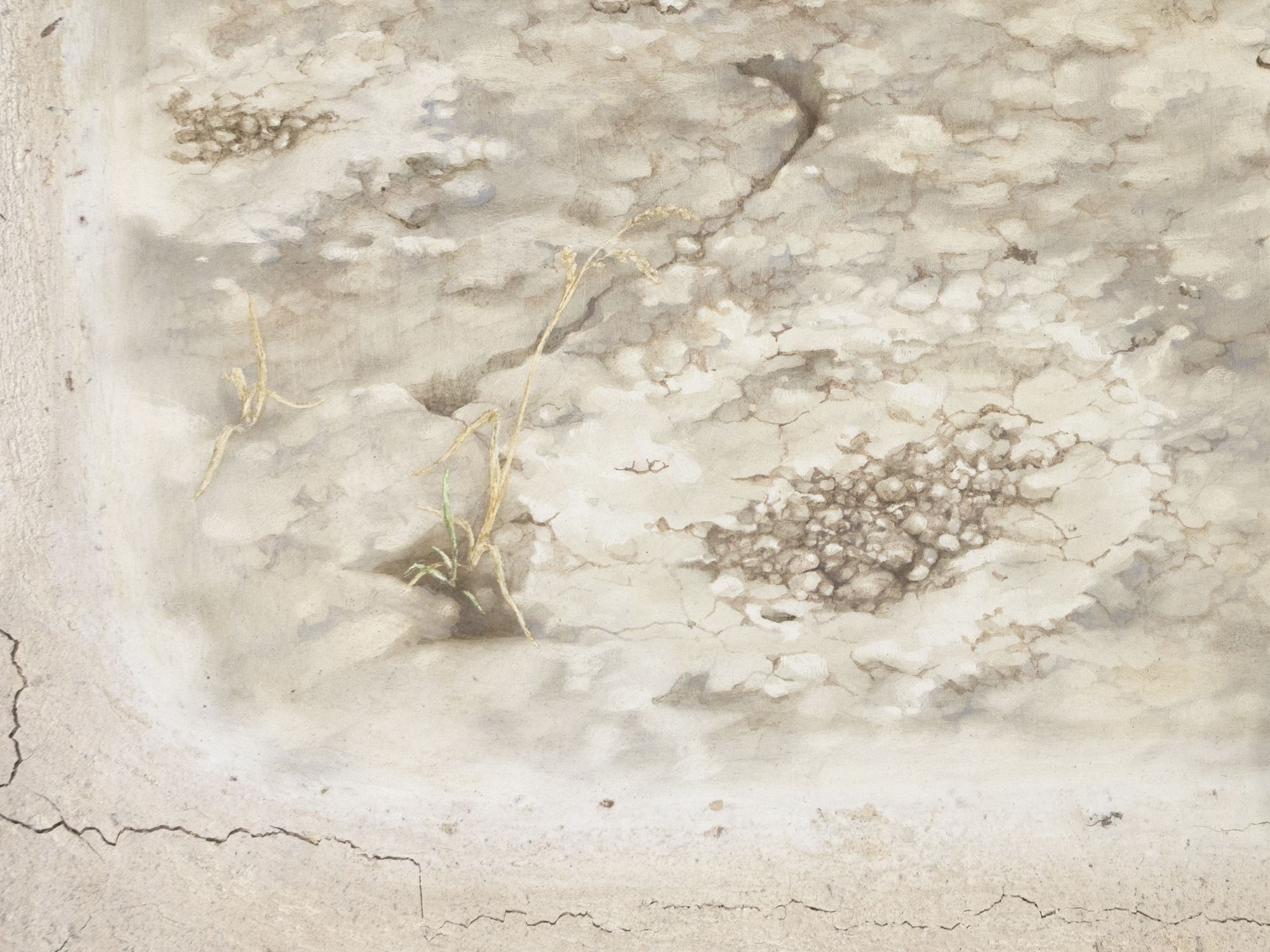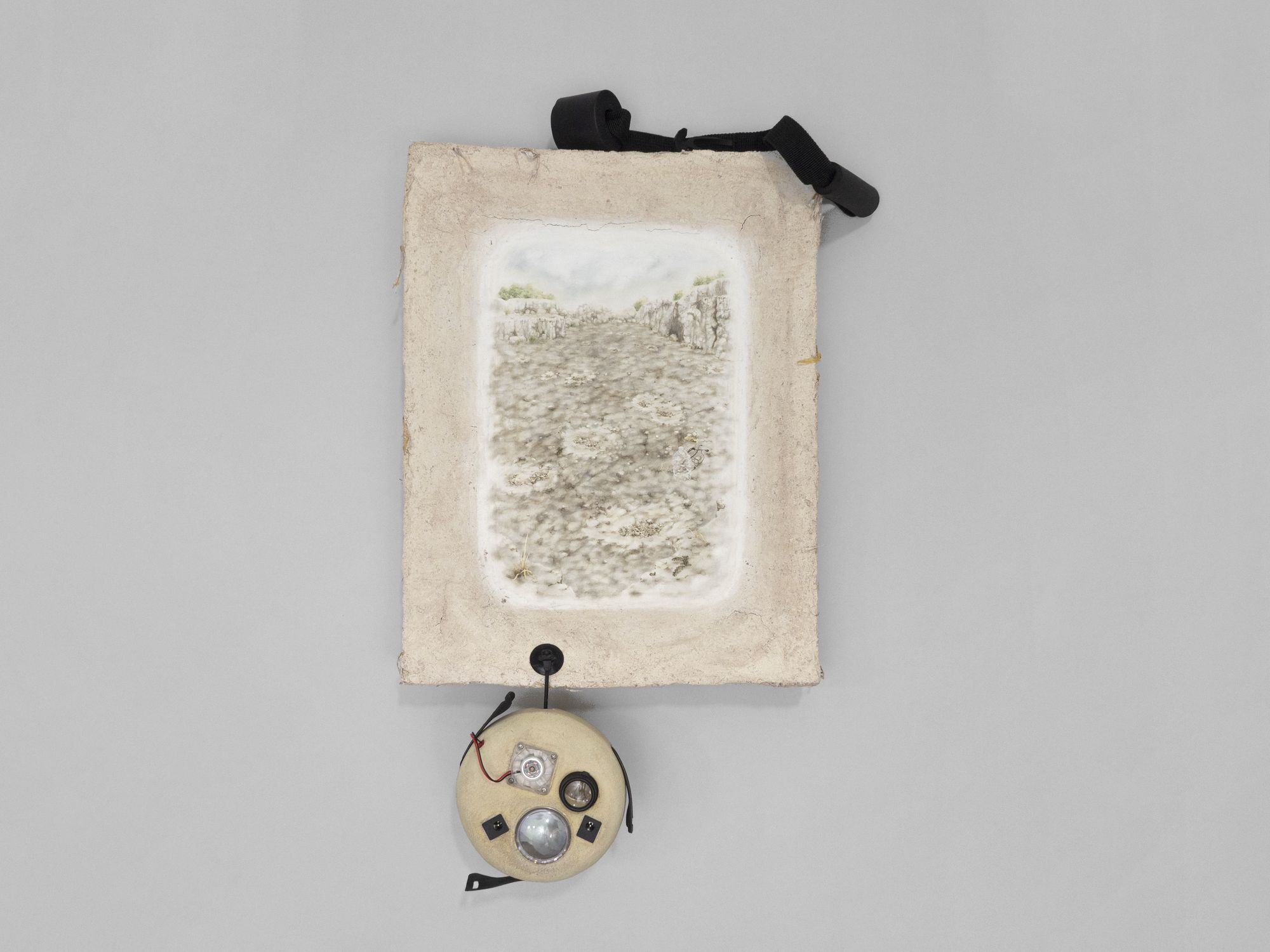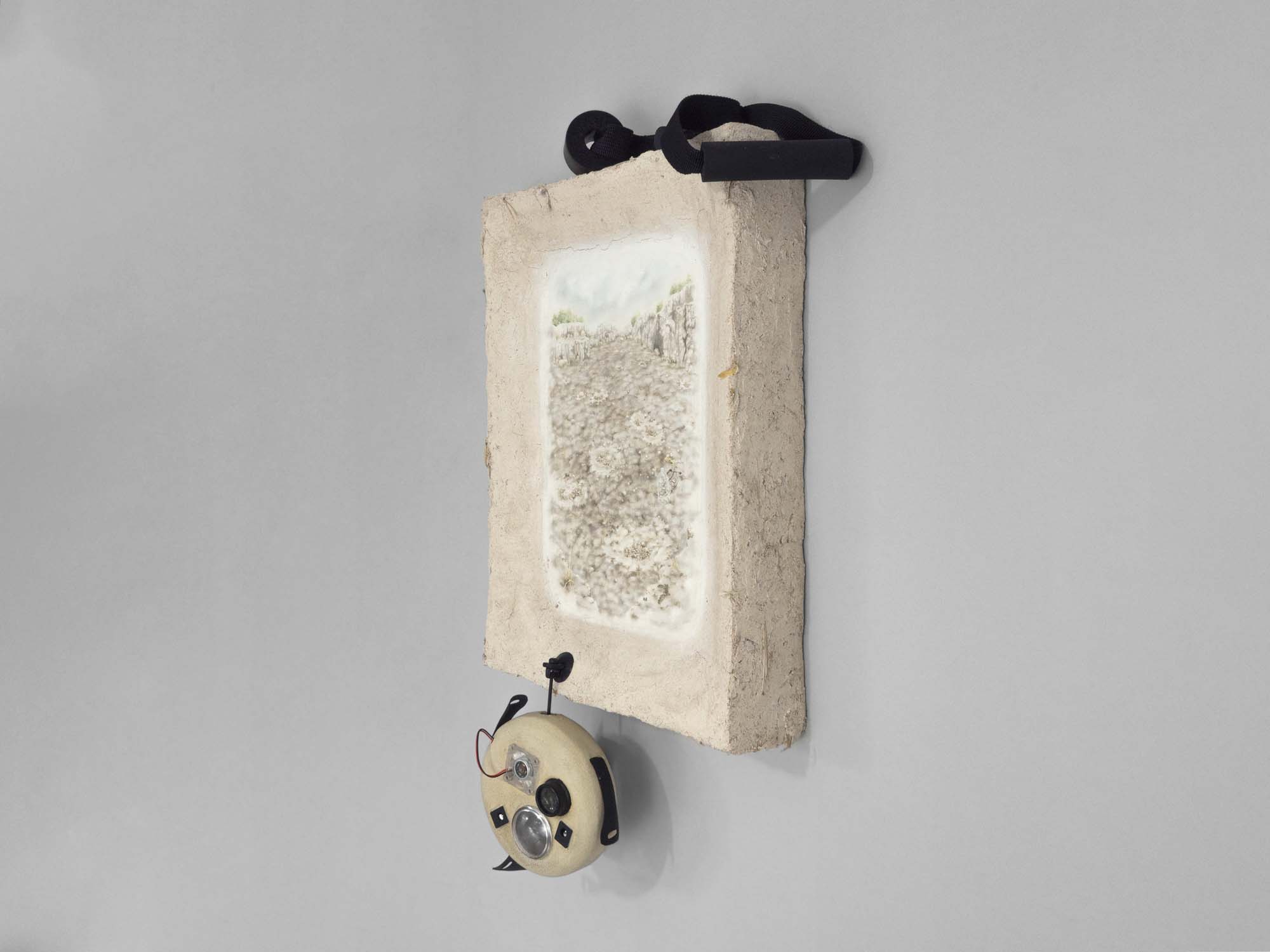 Torchis, dessin sur chaux, composants électroniques, bois, linoléum