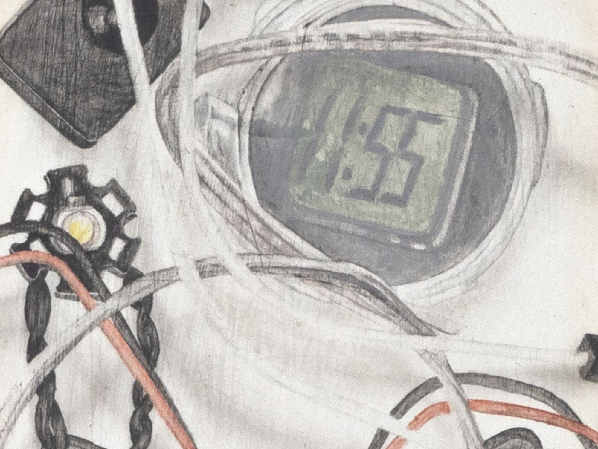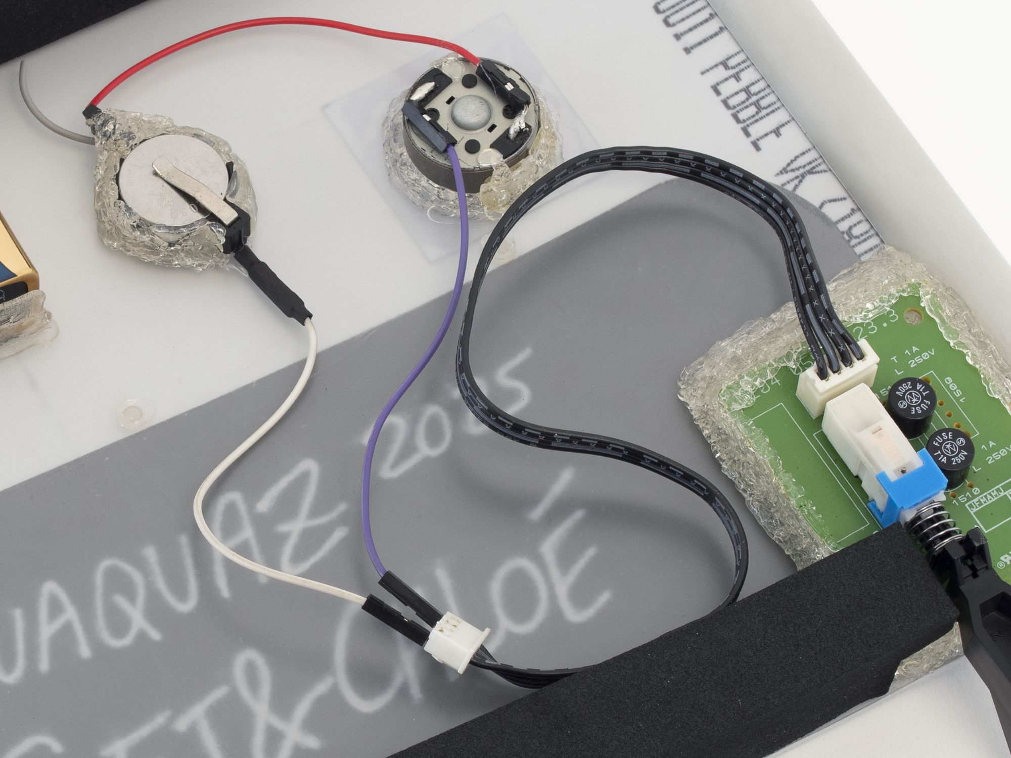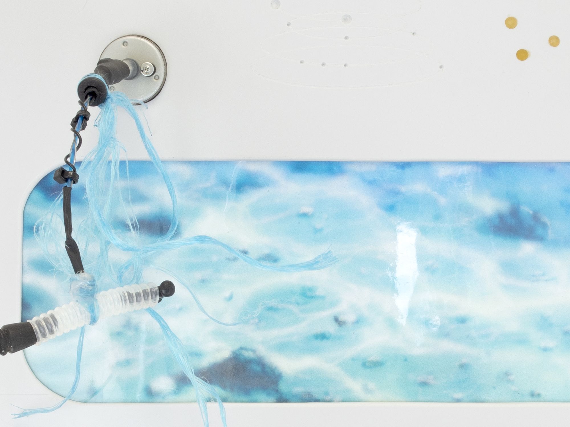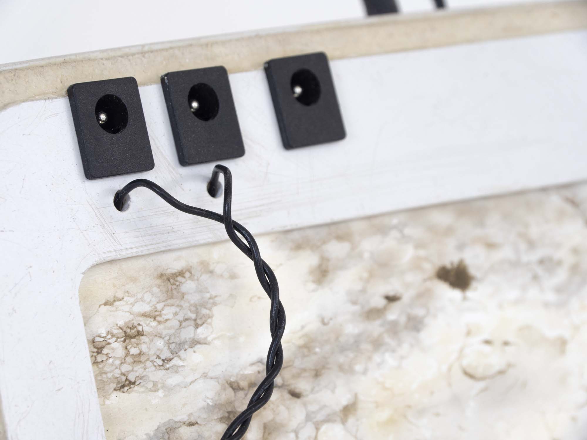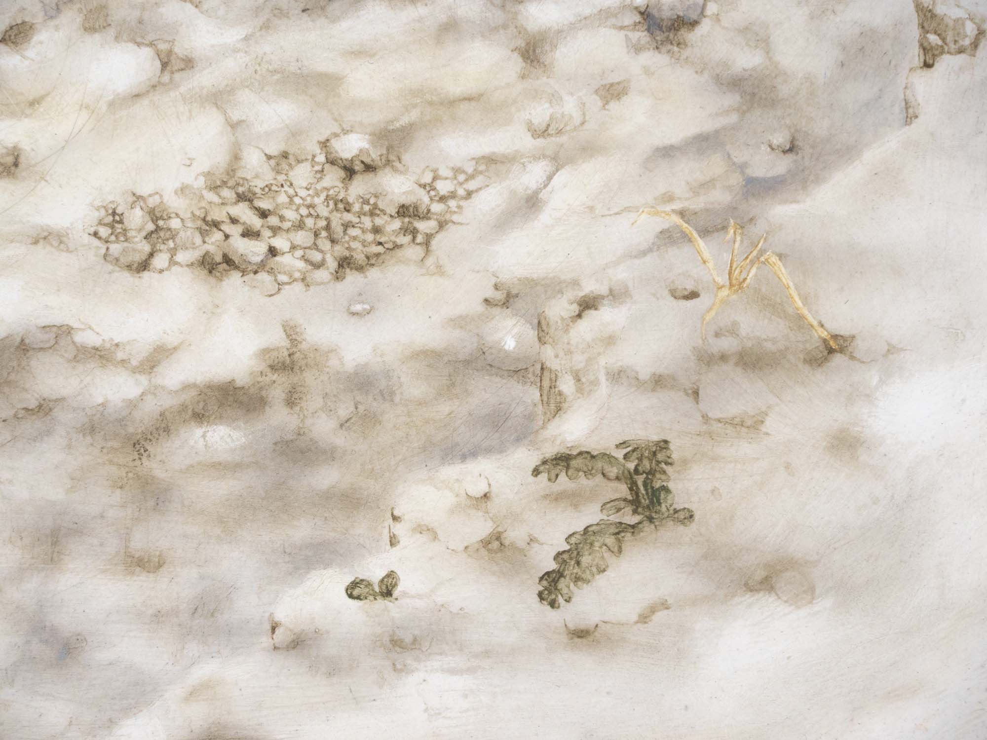 Torchis, dessin sur chaux, composants électroniques, bois, linoléum