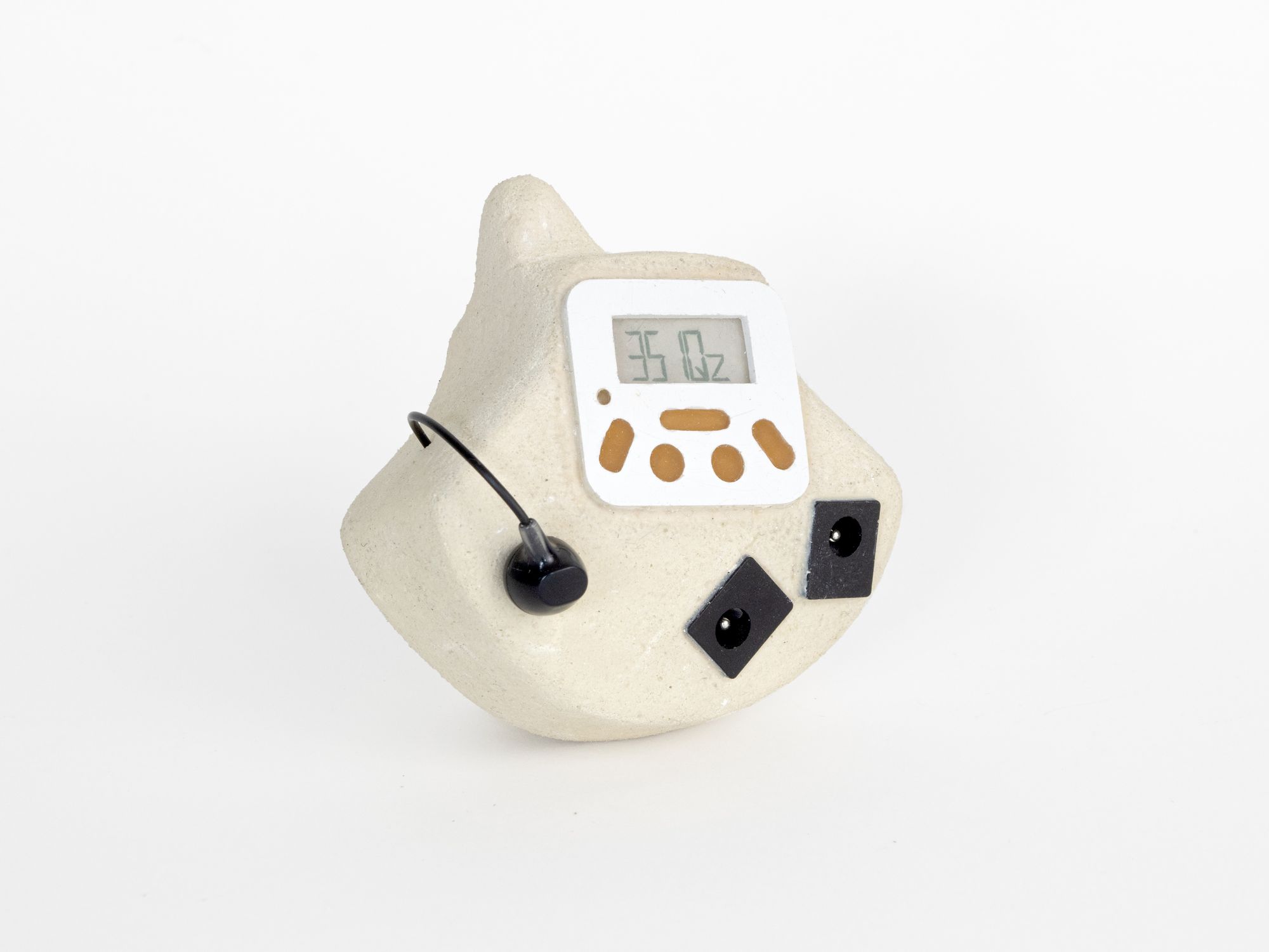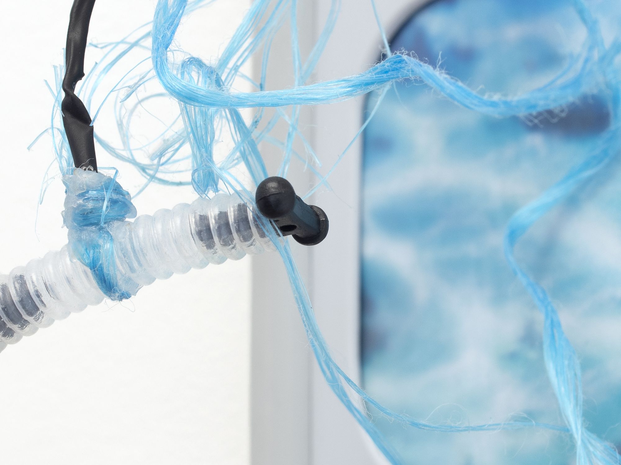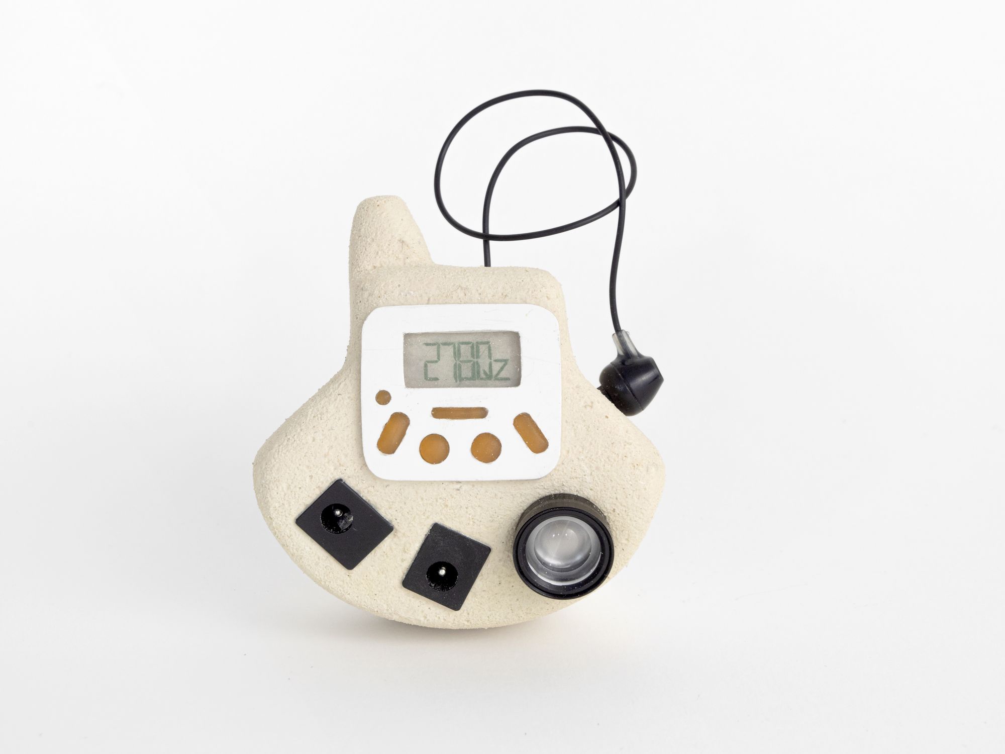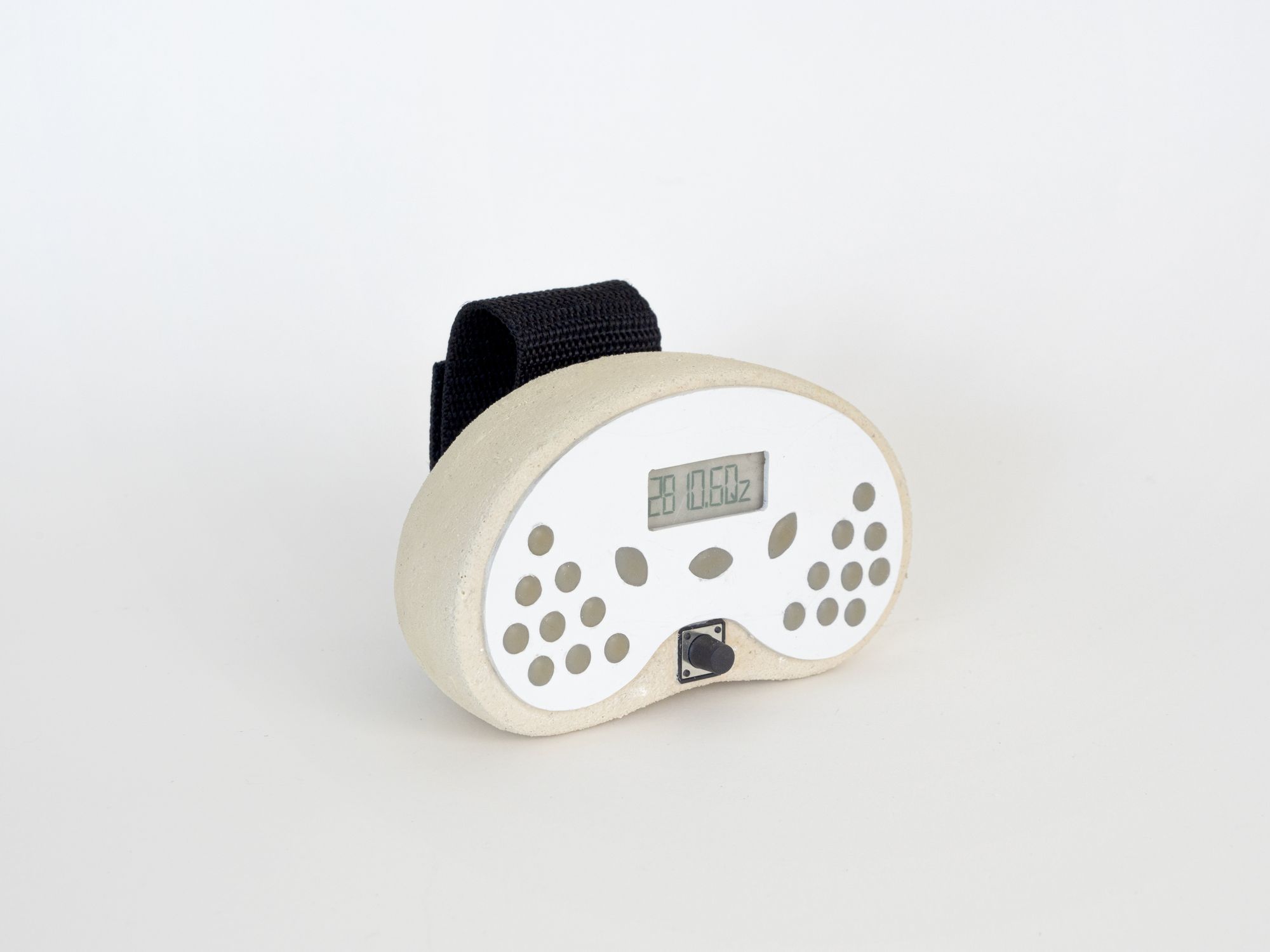 Torchis calcaire et paille locale, bois, pigments, lanceur, frisbee, latex, composants électroniques, mousse et caoutchouc